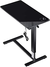 タンスのゲン テーブル サイドテーブル 昇降式 幅80cm 木目調 キャスター付き ドリンクホルダー コンセント付き 高さ調節 昇降式テーブル PCデスク パソコンデスク ベッドテーブル ブラック(鏡面) 41900017 (72675)