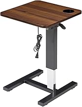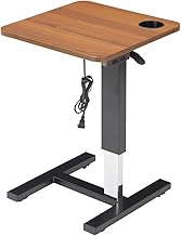 JIEANXIN サイドテーブル 昇降式 介護テーブル 昇降式 ベッドサイドテーブル 介護用 ベッドテーブル 幅80cm ガス圧昇降 無段階高さ調節 薄型キャスター付き 移動式 ベッドテーブル PCデスク 介護支援 在宅勤務 (ブラウン)