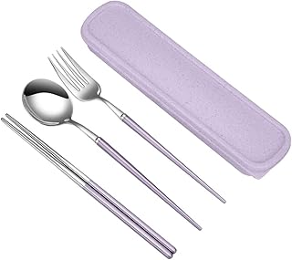OUNONA 食器 セット ステンレス鋼 カトラリー フォーク スプーン 箸 お弁当用 携帯便利 通学 通勤 アウトドア 登山 旅行 小麦ケース付(パープル)