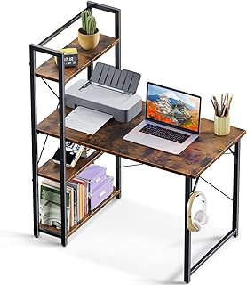 ODK デスク パソコンデスク ラック付きデスク 幅100cm×奥行48cm 机 pcデスク 左右入替可 ワークテーブル 収納ラック 省スペース 勉強机 学習机 在宅勤務 頑丈で組立簡単 ビンテージ