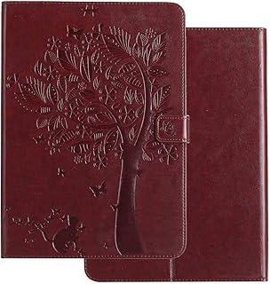 新しい iPad 9.7 2018 / 2017 ケース 軽量 ビッグ ツリー 蝶々柄 ネコ エンボス 高級 PUレザー フリップ 財布 スタンド保護ケース Apple iPad 9.7 インチ 2018 / 2017 用 コーヒー