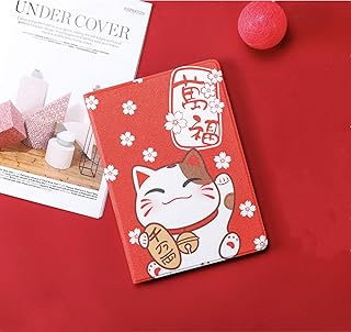 iPad 9.7インチ (2018/2017,第6/5世代用) ケース かわいいアニメ漫画招き猫まねきねこ赤い色運がよい絵画スマートケース高級PUレザー製 手帳型 スタンド オートスリープ機能 スマートカバー (iPad 2017/2018, TYPE 1)