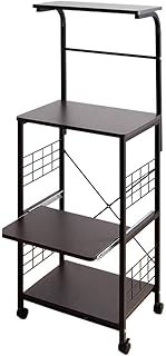 アイリスプラザ レンジ台 幅50 レンジラック 幅50×奥行43×高さ130cm コンパクト スライド棚 ストッパー付きキャスター 組立品 ブラウン RGK-49BN