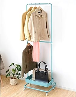 [山善] ハンガーラック 衣類収納 トローリーハンガー 幅61.5×奥行43×高さ137-189cm ハンガー1段 バスケット2段 ストッパー付きキャスター 組立品 ターコイズブルー LTH-2H(TBL)