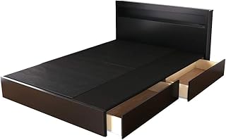引き出し 収納ベッド 棚・コンセント・LED照明付き レスター フレームのみ セミダブル 引き出し収納 収納付き/ブラック
