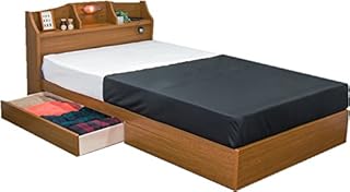 照明 コンセント 棚 引出付 シングルベッド 100幅 圧縮ロールボンネルコイルマットレス付 ブラウン