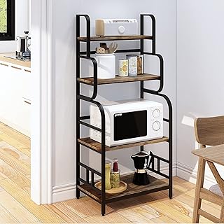 O&K ファニチャー キッチンボード キッチン棚 キッチンラック レンジ台 4段 トースターラック キッチン収納 家電や食器収納棚 おしゃれ シンプル 木製 木目 幅60CM×奥行28.5CM×高さ137.5CM(ブラック)