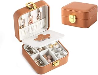 iSuperb カボチャの花 ジュエリーボックス ロック付き 鏡付き 持ち運び 小型宝石箱 ジュエリー収納 旅行 トラベル ピアス イヤリング ネックレス 指輪 ブレスレット 3色 (ブラウン)
