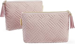 BAGSMART 化粧バッグ 女性用 2個 スモール メイクアップバッグ ハンドバッグ用 旅行用 コスメティックポーチ メイクブラシ リップスティック エレクトロニックアクセサリー, Ⅲ-ピンク+ピンク