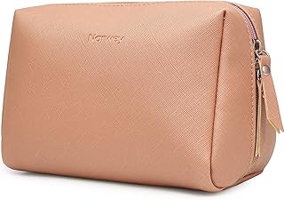 大型ビーガンレザー メイクアップバッグ ハンドバッグ用 旅行 メイクアップポーチ ミニコスメティックバッグ レディース ガールズ, オレンジ, L