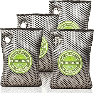 ココナッツチャコール 空気清浄バッグ 活性炭バッグ 防臭 天然カー空気清浄機 3倍の吸収効率 空気清浄機 ご家庭の消臭剤 クローゼット用 7オンス x 4パック