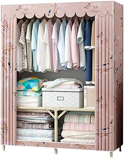HSBAIS ワードローブクローゼット 折りたたみ式 キャビネット、鋼管 収納クローゼット 屋外防水防水 ジッパー ワードローブ布製キャビネット 自立型衣類オーガナイザー,Pink_110x45x160cm