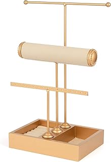 ジュエリースタンド オーガナイザー 3段 ジュエリーツリースタンド ゴールドジュエリーホルダースタンド ネックレスブレスレットホルダー ジュエリーディスプレイスタンド ジュエリータワー リングトレイ付き ネックレス/ブレスレット/腕時計/イヤリング/化粧品用