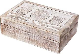W Weblytech 3匹のフクロウ 家族 手彫り 木製 記念品 装飾 ジュエリー 小物入れ 収納 オーガナイザー ガールズ レディース