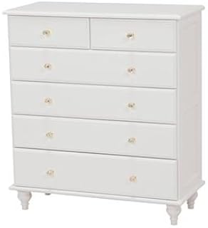 ワイドチェスト/収納棚 【5段】 幅80cm×奥行35cm クリスタル取っ手付き 木製 ホワイト(白) 【代引不可】