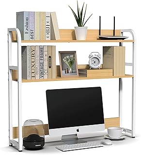 デスク上収納ラック デスク上置き棚 卓上ラック 2段収納 95 x 20 x84cm プリンター台 机上ラック 卓上本棚 収納棚 机上台 板1枚あたりの耐荷重は20kg ナチュラル