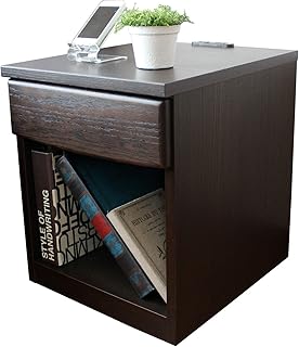 大川家具 幅38.9cm コンセント付き ナイトテーブル サイドテーブル ダークブラウン