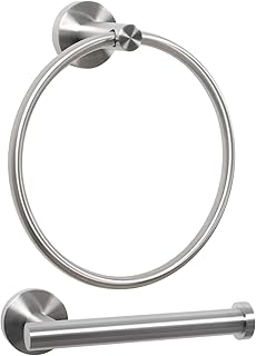Flyfox バスルームハードウェアセット タオルリング トイレットペーパーホルダー 耐久性 SUS304 ステンレススチール つや消しニッケル 2個