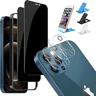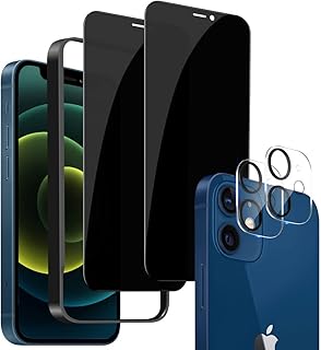 【4枚入り】 iPhone 12 覗き見防止 ガラスフィルム(2枚)+ iPhone 12 用カメラフィルム(2枚) 2眼レンズ保護 【2021年 日本製旭硝子/防指紋/全面 保護フィルム/ガイド枠付き】 iPhone12 用 レンズ保護フィルム+ iPhone12 用強化ガラス 液晶保護フィルム( 6.1インチ )