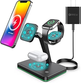 【 Mag-safe対応】ワイヤレス充電器 Braveby 3in1 磁気充電 マグネット式 置くだけ充電 15W急速充電 Apple Watch充電 Airpods充電iPhone12/iPhone13シーリス用 iPhone 13 / iPhone12 / iPhone12 mini / iPhone12 Pro/ iPhone12 Pro Max 対応 充電スタンド 日本語説明書付き 18WQC3.0アダプター付属【PSE認証済み】