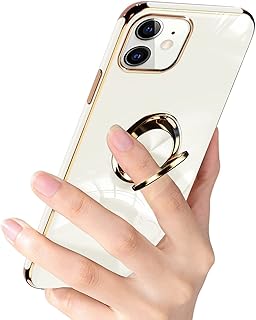 IPhone12 mini ケース リング付き iphone 12 mini カバー リング 携帯カバー 耐衝撃 薄型 TPU 軽量 シリコン スタンド機能付き 360回転車載ホルダー (クリーミーホワイト)