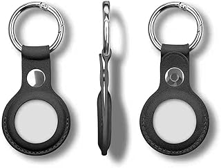 SHIJUNHE レザーケースカバー キーチェーン Apple Airtags用 キーチェーン 保護スリーブ 紛失防止 シェルプロテクターケース Airtags用 (ブラック)