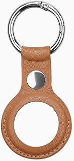 SHIJUNHE レザーケースカバー キーチェーン Apple Airtags用 キーチェーン 保護スリーブ 紛失防止シェル 保護ケース Airtags用 ブラウン