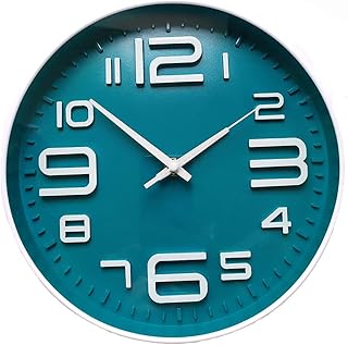 Snifu 時計 壁 掛け時計 10インチ 北欧風 丸形 壁掛け時計 3D大数字 見やすい 連続秒針 静音タイプ シンプル ファション 四色選択-ブルー