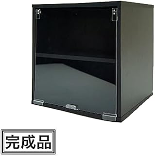 【完成品】キューブボックスα 棚付きアクリル透明扉タイプ/カラーボックス キューブボックス 扉付き ミニ食器棚 コレクションケース (ブラック)