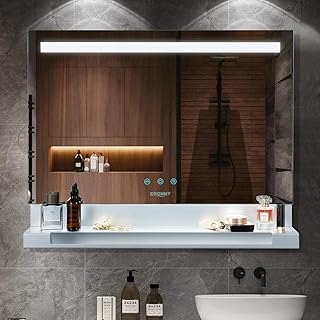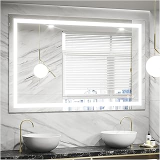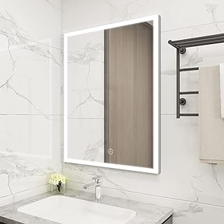 Keonjinn 36 x 24インチ バスルーム LED ミラー 曇り止め 調光機能付き 壁取り付け 化粧台ミラー ライト付き (縦/横)