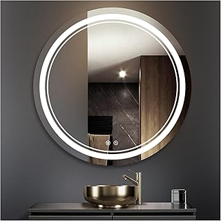 Amorho 浴室化粧台ミラー 28インチ 円形 壁取り付け 調光機能付き 曇り止め LED バックライト付きバニティミラー タッチスイッチ付き