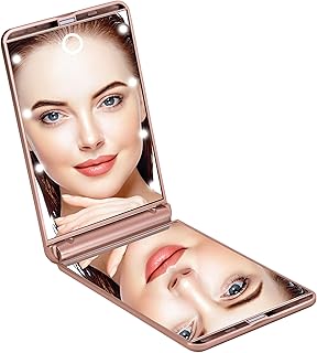 Impressions タッチアップ 調光機能付き LED コンパクトミラー マグネット開閉 化粧台 メイクミラー タッチセンサースイッチと拡大鏡付き (ローズゴールド)