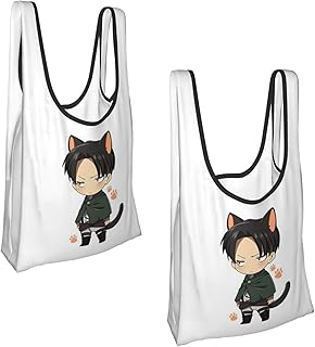 進撃の巨人 リヴァイ兵長 エコバッグ 買い物袋 2個入り 折りたたみ 防水素材 軽量 大容量 多機能 男女兼用 アニメ キャラクター グッズ 雑貨